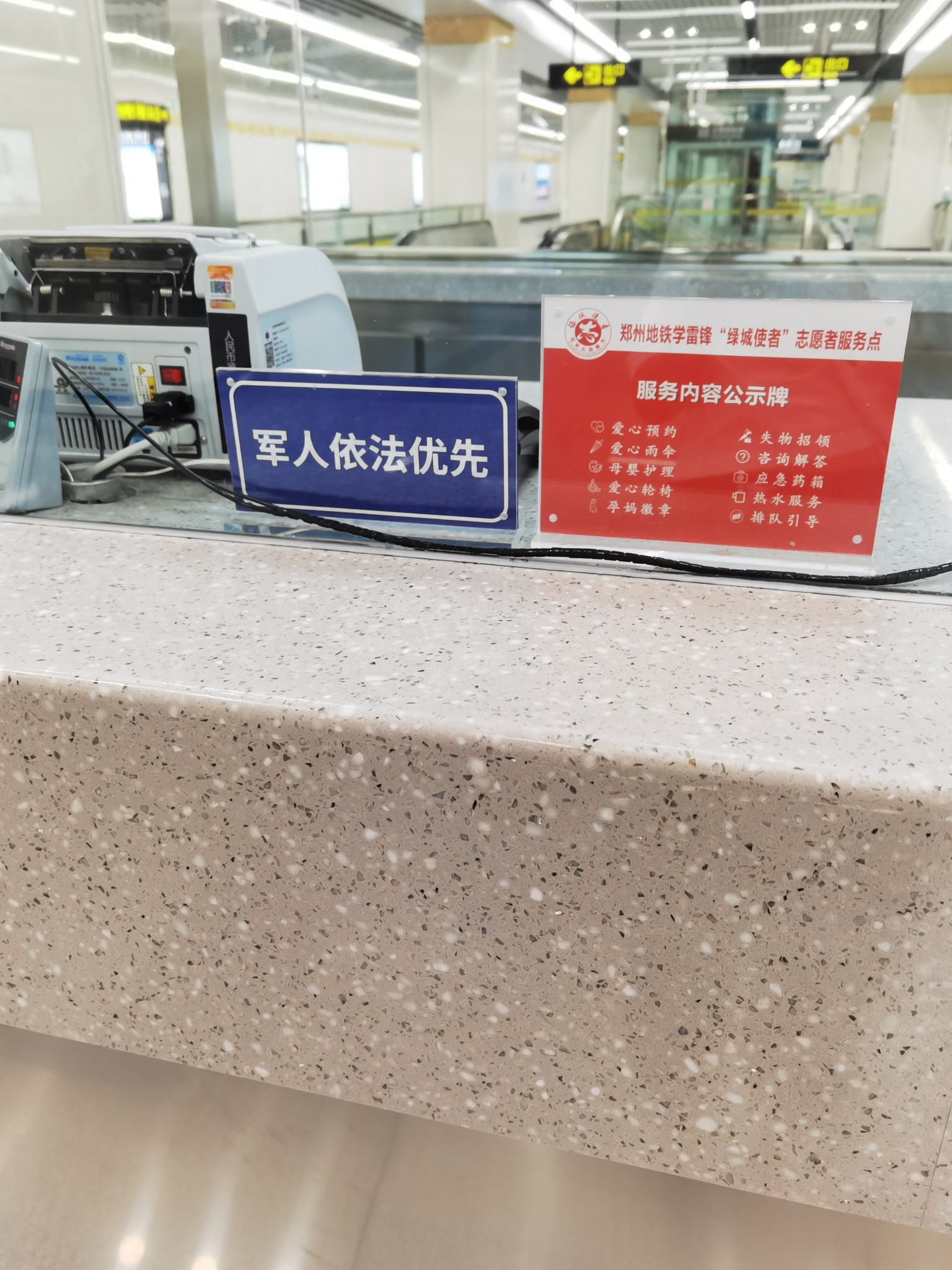 在柳林地铁站内的一人工客服中心暨“学雷锋志愿服务点”,值班人员一听说消防员优先免费的事,直接说确实已经免费,消防员可持证来人工窗口换取一张类似单程票的爱心票,直接刷票进入,出站时直接将票投进出站闸机便可。