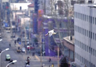 法桐树,搭建起了人与夜鹭的两个平行空间,有时也会发生一些意外有趣的交集。譬如说,三只夜鹭因为争抢领地打架,凌晨试飞的夜鹭雏鸟无意间闯入一家小饭馆,等等,都会让人类津津乐道好久。
