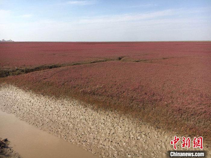 经过半年的规模性修复,红海滩景区滩涂潮汐覆盖率有所提升,部分滩涂盐碱度大幅下降,红海滩的面积今年在1.2万亩左右,是去年的4倍,形成了大面积的壮美红色区块。