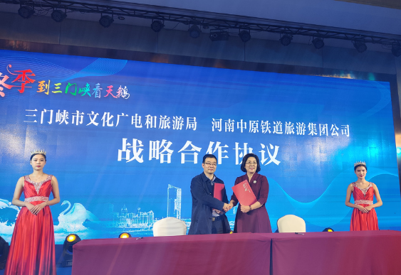 三门峡市文化广电和旅游局党组书记、局长毋慧芳发布2020年三门峡白天鹅旅游季三大精品线路,分别为文明溯源之旅、生态康养之旅、山水风光之旅。同时,还分享了三门峡旅游相关奖励政策。项目签约环节中,三门峡市文化广电和旅游局与河南中原铁道旅游集团有限公司签订《战略合作协议》;郑州中原铁道国际旅行社与“天鹅季”揽客联盟代表签署《三门峡“天鹅季”揽客协议》;三门峡陕州地坑院与河南永安国际旅行社签订合作协议 。