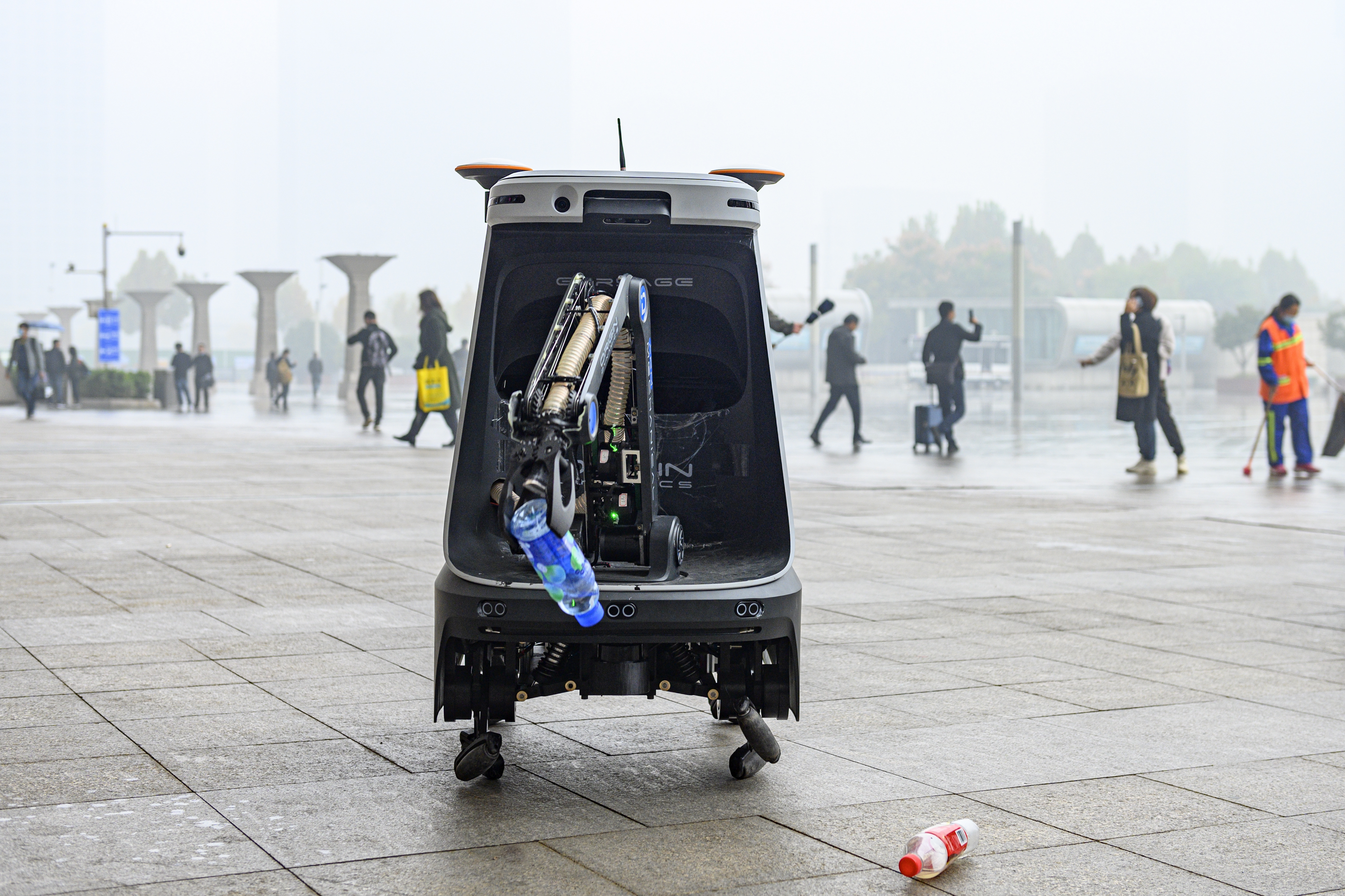 配有机械臂的机器人会做什么?围观的旅客发出这样的疑问,想试一试机器人的本领,便把手中的易拉罐扔在了机器人的前方。就在易拉罐落地的同时,机器人捕捉到了这个出现在视野的垃圾,开始向落地的易拉罐移动,随后站定,伸出机械臂,抓起了易拉罐投入到后部的垃圾箱。“整个过程不拖泥带水,真是长了见识!”看到机器人完成考验,旅客们纷纷点赞。