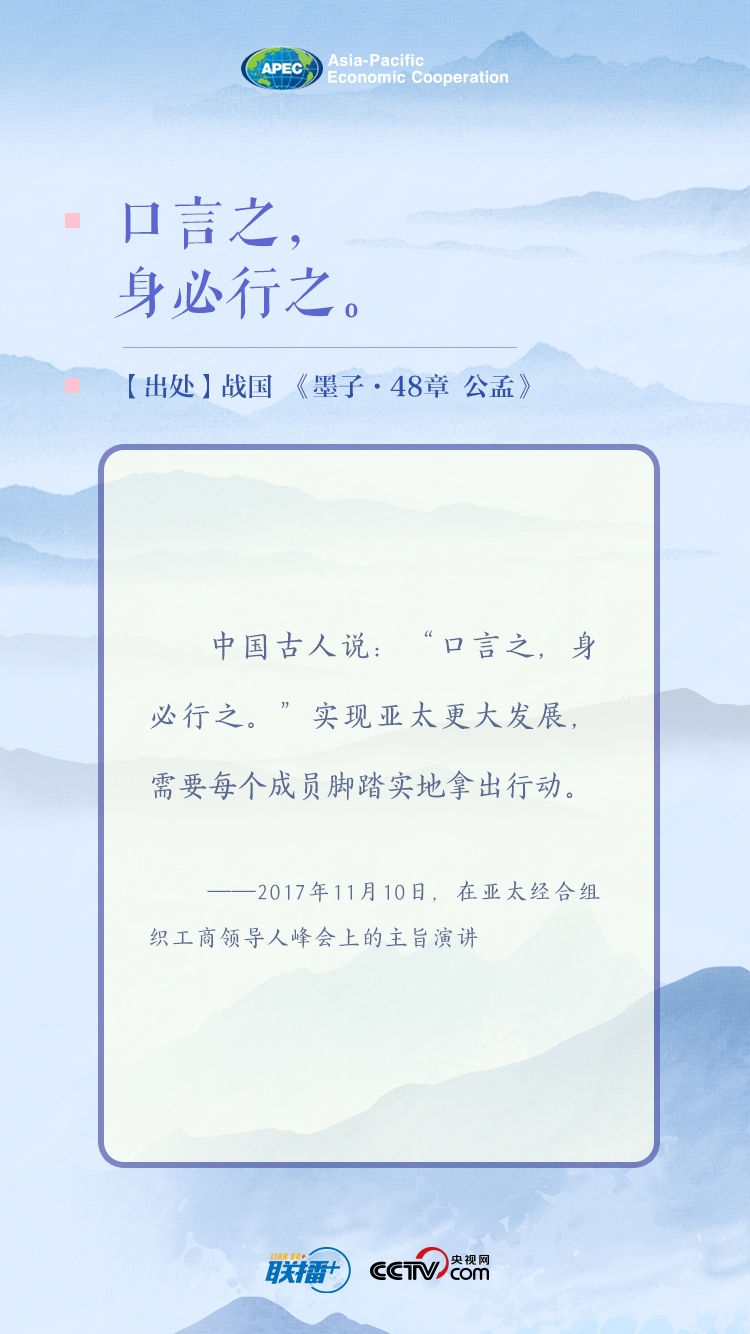 2013年以来,习近平主席多次在“APEC时间”引用古语、谚语,为亚太地区共同繁荣贡献中国主张。今天,央视网《联播+》与您一起学习。