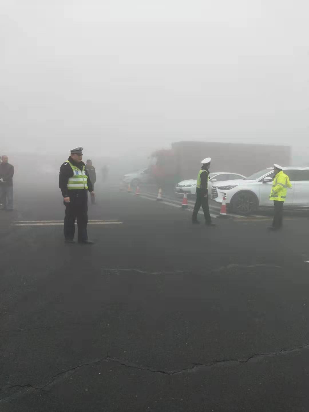 为确保大雾天气下群众出行安全,省公安厅高速交警总队根据全省高速公路天气情况和通行条件,实时启动《全省高速公路雾天交通管理应急处置预案》,应急处置,快速反应,实时采取管控措施确保行车安全。