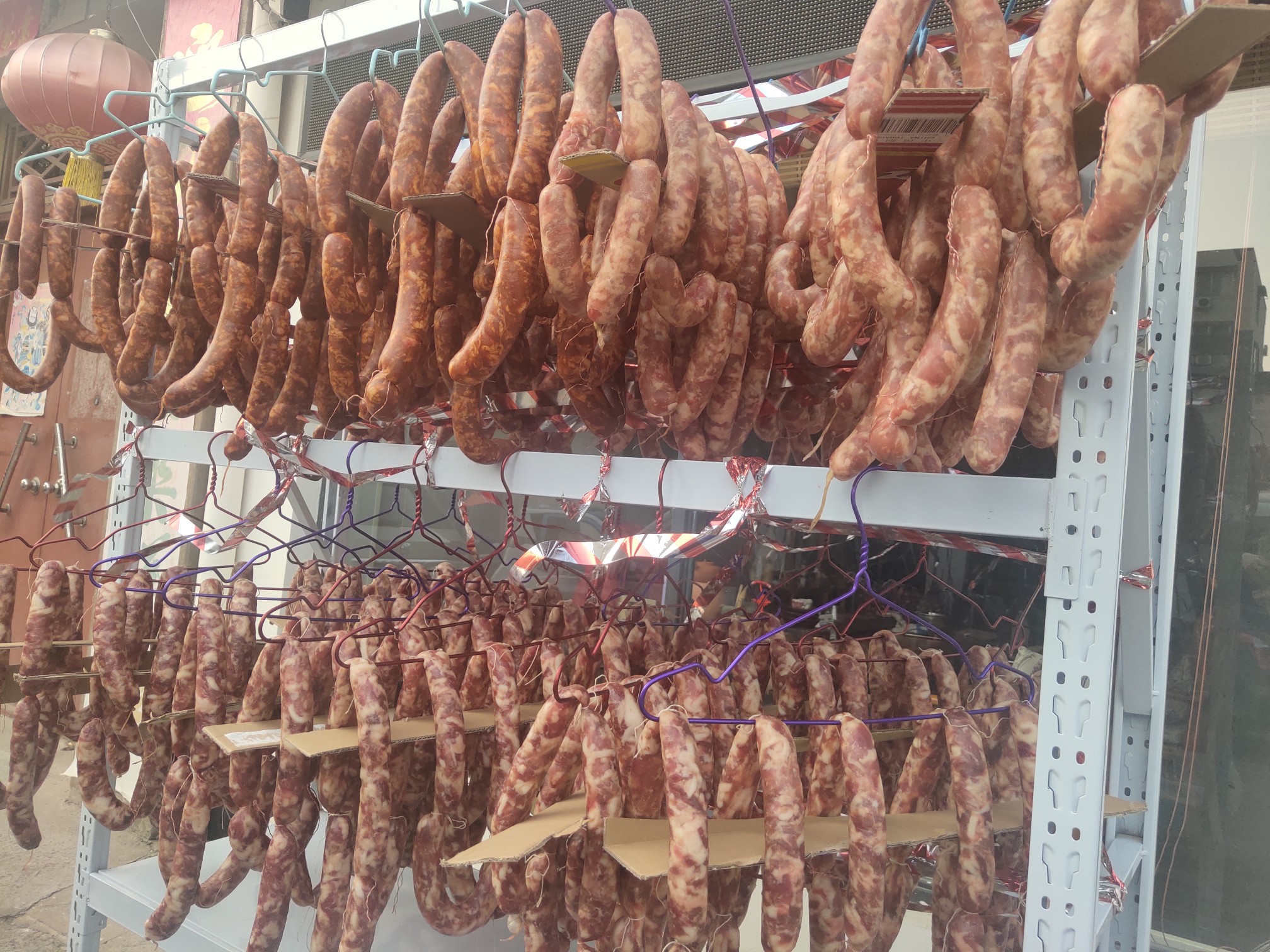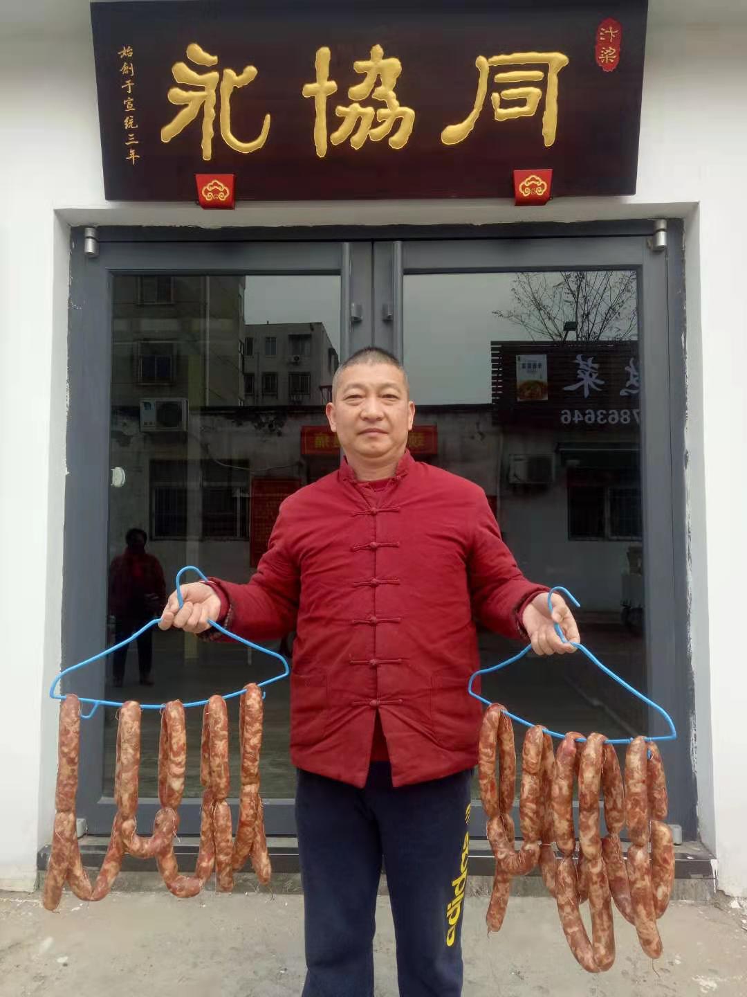 老开封人对于美食有自己独到的见解,吃东西不仅讲究认地还家家户户都有一套节时常备小菜的秘方,每每到了12月末随着双节的临近,各式菜市场的肉铺就挤满了定制香肠的开封人。开封人制作香肠可不是随便一装就了事,肉要猪的哪一部分的,肥瘦什么比例,料包什么内容,那都有一定的秘方,用开封人说就是那都有“封儿(方儿)”。“开封人讲究吃,每年一到12月,家家户户都开始备一些小菜,在春节大鱼大肉腻住肠胃时,来做开胃的小菜。每到年关,装香肠几乎是每一家开封人家的必修课,一些饭店也会适时地推出本家特色的香肠出售,你在大街上会看到街边晾在杆子上的香肠,这种场景也只有12月份能看到。”12月16日下午,大河报·大河客户端记者来到开封老字号同协永的作坊,致力于开发汴梁古食方的姚忠诚师傅,向记者介绍起具有开封特色的香肠的制作方法。