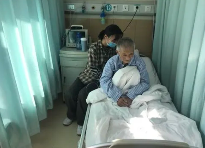 在河南省人民医院胸外科一病区,妹妹胡改革帮父亲顺气(12月22日摄)。新华社记者 王烁 摄