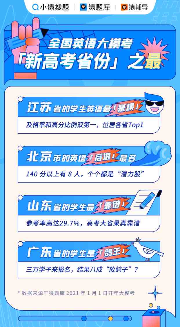 据猿辅导透露,猿题库模考自2016年开始,至今已经举办了20届,累计有超过一千万名学生参加,试卷还原中高考难度,一度被学生们称为“英语小高考”。