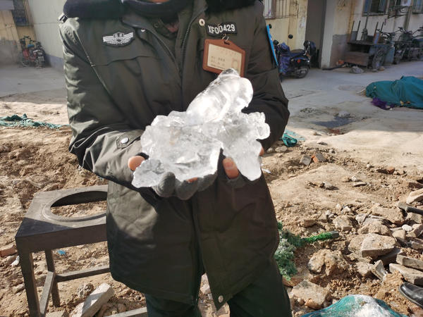 1月6日上午9时10分,金水区未来路巡防队员司广红、侯晏君、芦龙等人巡逻到顺河路5号院时,发现16号楼对面幼儿园教室的外墙上,悬挂着一串串冰挂,有的冰挂长达2米,且正方尖利无比,如同一把把利剑垂向地面。队员经过仔细查看,发现是一根临时架设在墙体上的自来水管道被冻裂后,流了的水在夜间极低的气温中,形成了一根根冰挂。
