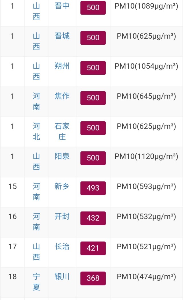 比如,黄河以南大部分地区均有4级左右大风,大风时段,各地均出现PM10污染,且上游区域的扬尘污染会加重下游区域的污染,同时产生的高空浮尘,使得整个区域空气质量都严重受影响。