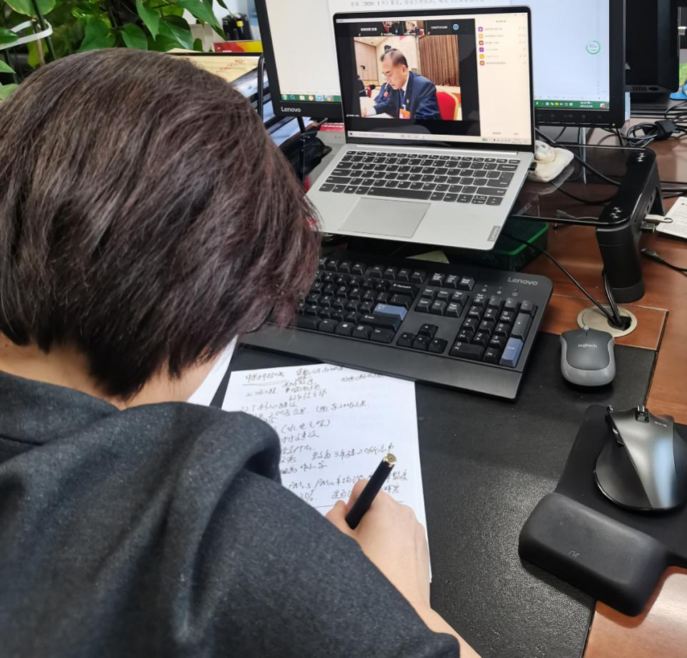 参会人员通过云视讯系统聆听并认真记录代表审议意见