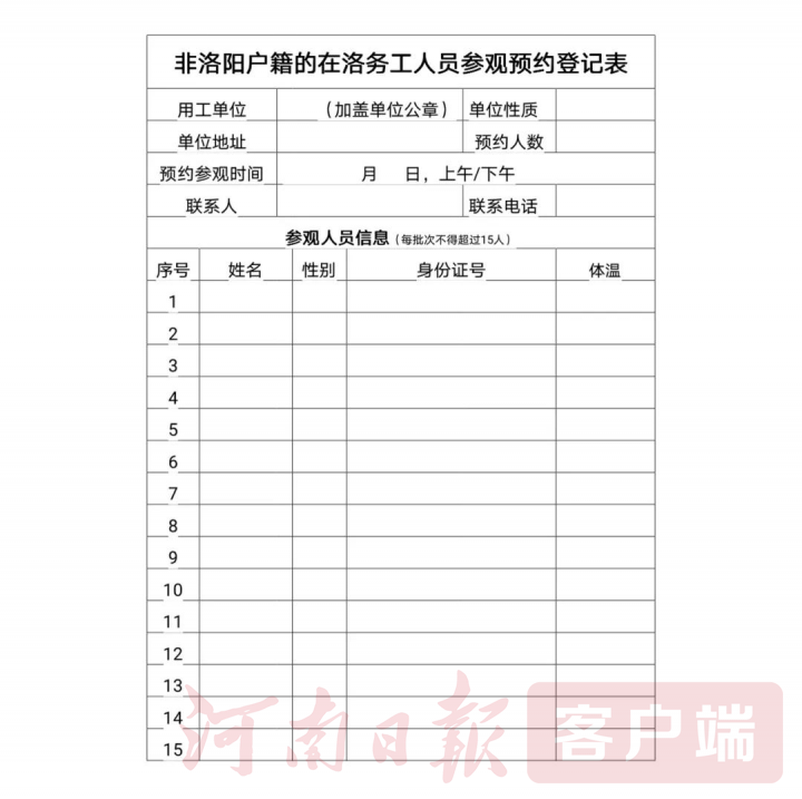 非洛阳籍在洛务工人员持本人有效身份证件和用工单位加盖公章的参观预约登记表,按照预约时间和预约人数,统一到龙门石窟票务中心换取免费参观券。