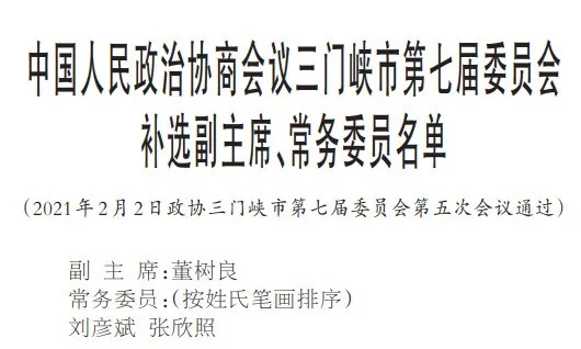 2021年2月2日,当选政协三门峡市第七届委员会副主席。