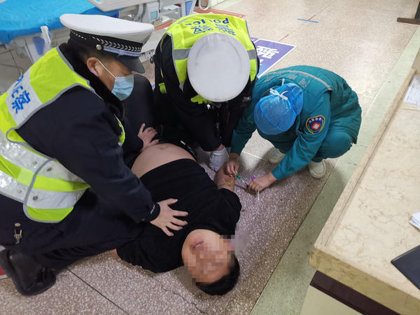 中牟县交警大队事故中队民警到达现场后,对这起事故进行调查。突然,他们听到马路对面有人呼喊:“这边也发生一起追尾事故!”事故民警遂赶去查看情况,同去的面包车女司机看到停在现场的越野车时,气愤地说:“就是这辆车,刚也是他开车撞的我们!”民警随即将肇事司机进行控制。然而,肇事司机被带上警车后,却耍起了酒疯,不停地踢车窗。被送到医院抽血时,该司机躺在医院的走廊里大吼大叫,后被民警强制抽血检测。