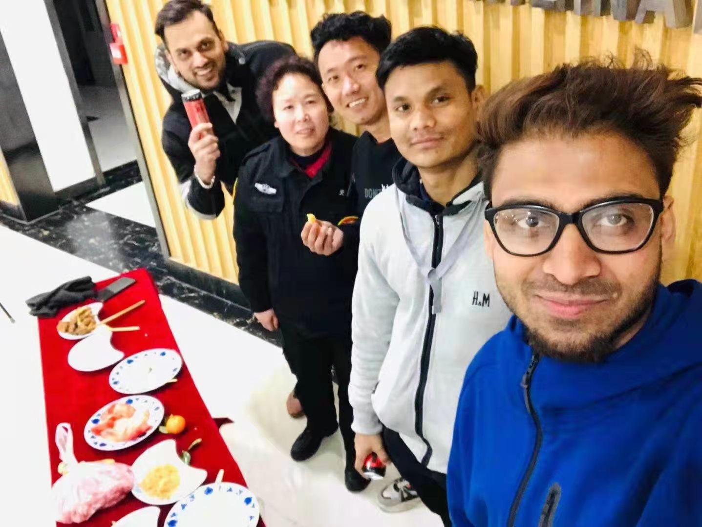 张阿姨的“零食投喂”对于在校的留学生们来说并不稀奇,王力说,除夕晚上张阿姨值班,家人给她送来了饭菜,学校也发了速冻饺子,她让好几位还没吃晚饭的学生拿来餐具一起煮饺子,搭配她提前带来的各种零食水果饮料,张爱民和同学们一起分享了一顿朴素却暖心的年夜饭。这样的场景,对于寒假在校的留学生而言,即是温暖的小聚,也是对思乡之情的抚慰。