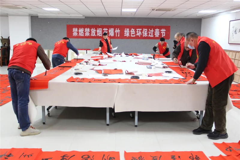 1月28日,焦作市生态环境局联合焦作市文联开展“禁售禁放烟花爆竹 绿色环保过春节”送春联活动现场,焦作市文联书法家书写环保春联。焦作日报记者 李洋洋 摄
