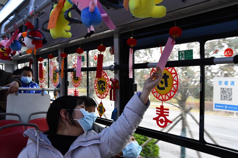 小灯笼、玩偶、车贴……202路公交车的始发站是河西袁村。上车的乘客发现,车厢内,已经提前被郑州公交的工作人员们张灯结彩装扮一新,车厢里弥漫着元宵佳节即将到来的热闹气氛。