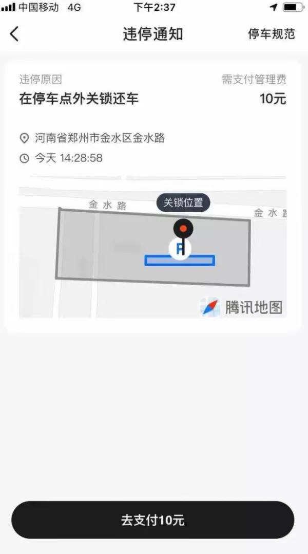 需要注意的是,车辆更新后,用户手动锁车将升级为手机APP锁车,用户根据手机APP诱导提示,将车辆停放在指定的停车区域,超区停放,单车企业将扣除用户10元的车辆调度费,累计5次,用户将被列入企业骑行用户黑名单。