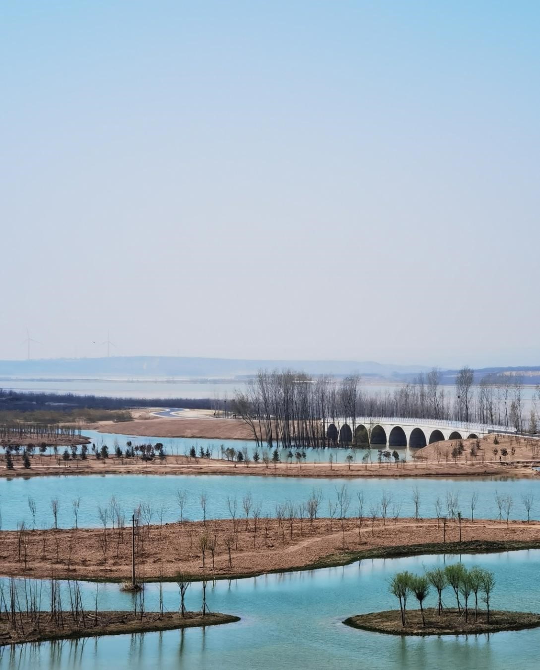 生态与文化并举,带来无处不在的勃勃生机,也让沿黄生态廊道更具吸引力。好阳河湿地公园以“中华焦氏第一村”——冯佐村的丰厚历史文化为主题,布局了杏花谷、禹台、如意湖、幸福岛、焦家岭、百亩荷塘六大节点,如今,湖、塘、桥、亭、岛及沿线道路、停车场已先期建成,道路绿化提升正在收尾,如意湖的画桥、水上观景平台正抓紧建设,或在五一前呈现。