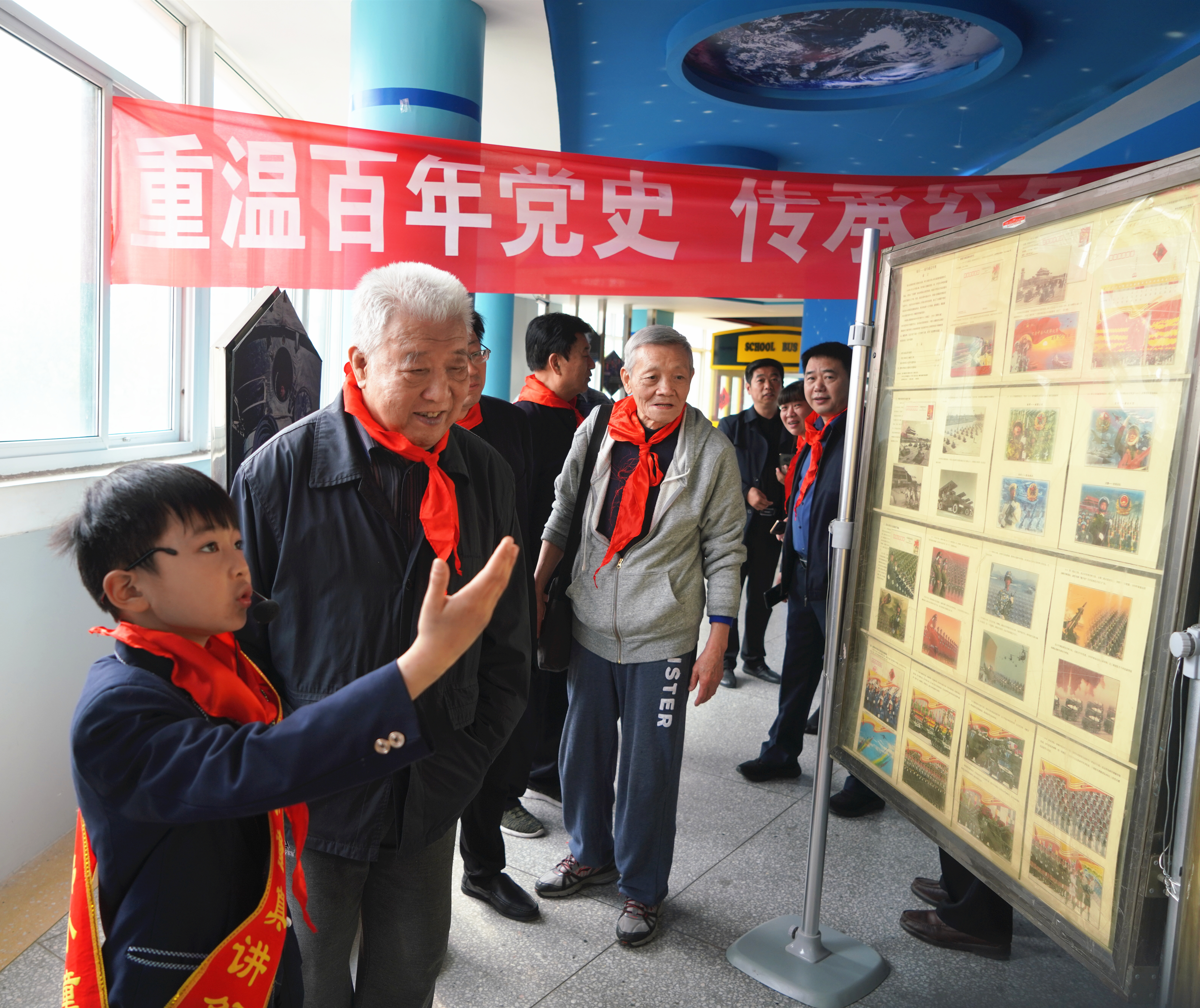在这次邮展中,经过河南书画院原院长杨昆仑老师的亲自指导,邮展专业知识过硬、业务熟练的一支优秀的“党史小讲解员”队伍惊艳亮相,他们用准确清晰的语言向老师、同学、家长及社会人士讲述党的百年奋斗历程,用自己的实际行动传承红色基因,带动和影响着身边的每一个人。