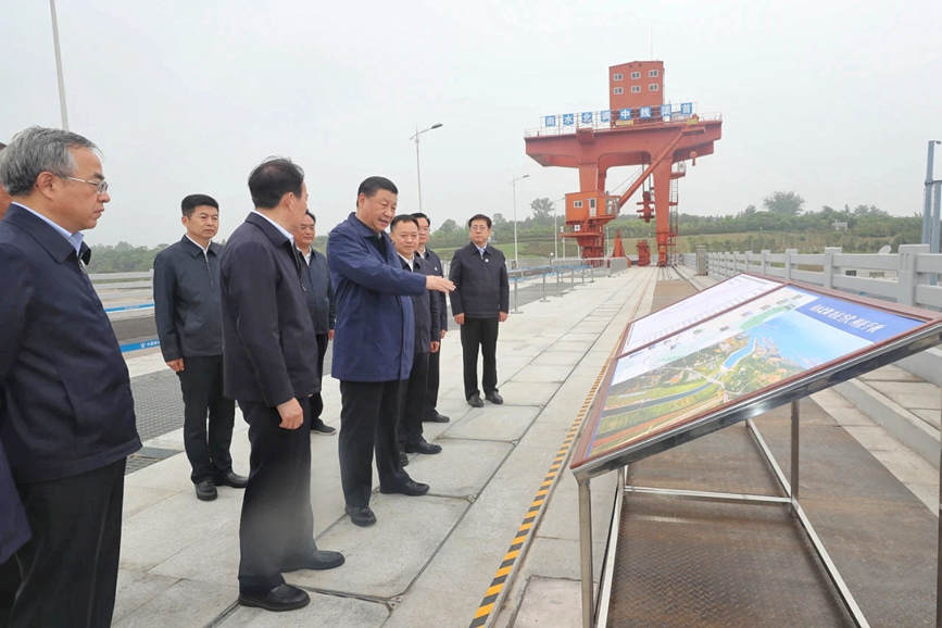 13日下午,习近平总书记来到河南省淅川县,先后考察了陶岔渠首枢纽工程、丹江口水库和九重镇邹庄村,听取南水北调中线工程建设管理运行和水源地生态保护等情况介绍,了解南水北调移民安置、发展特色产业、促进移民增收等情况。途中,习近平还临时下车,走进麦田察看小麦长势,了解夏粮生产情况。