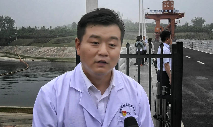 河南省南水北调中线渠首生态环境监测应急中心副主任黄进接受采访。人民网 霍亚平摄
