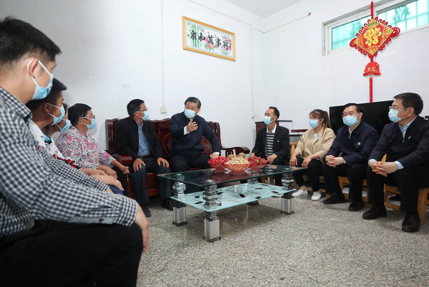 13日下午,习近平总书记来到南水北调工程移民村淅川县邹庄村,了解移民群众生产生活情况。