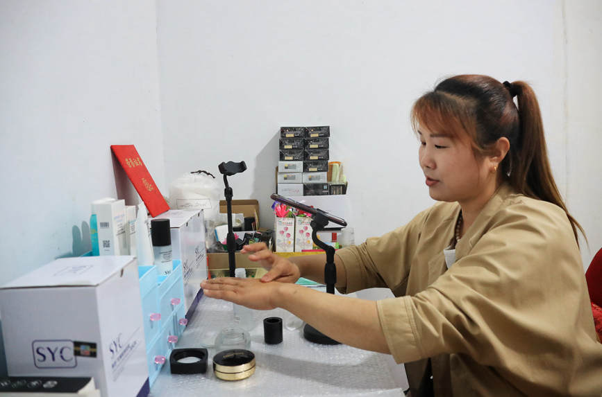 郭春玲正在家中做直播。人民网 霍亚平摄