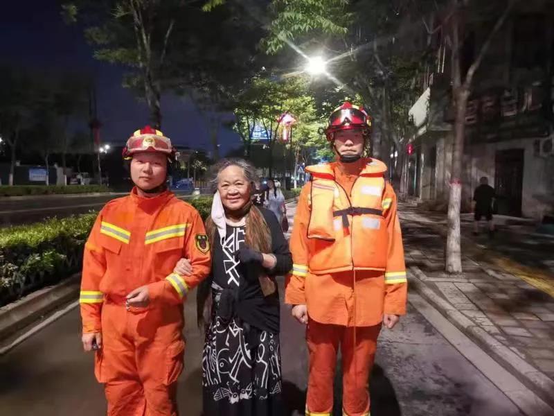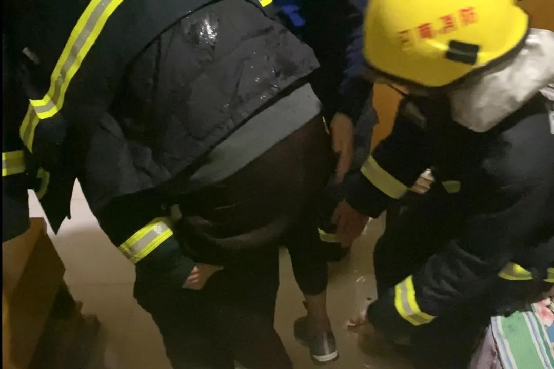 到达现场后发现,由于该路段地势低洼,加上雨越下越大,积水有1米多深,路面积水不停地向被困老人家中倒灌,卧室内积水已有30多厘米深。被困老人由于身体原因无法正常行走,形势十分危急。指挥员见状,立即脱下战斗服上衣,为老人披上遮挡暴雨,三人合力将老人转移到二楼邻居家中。