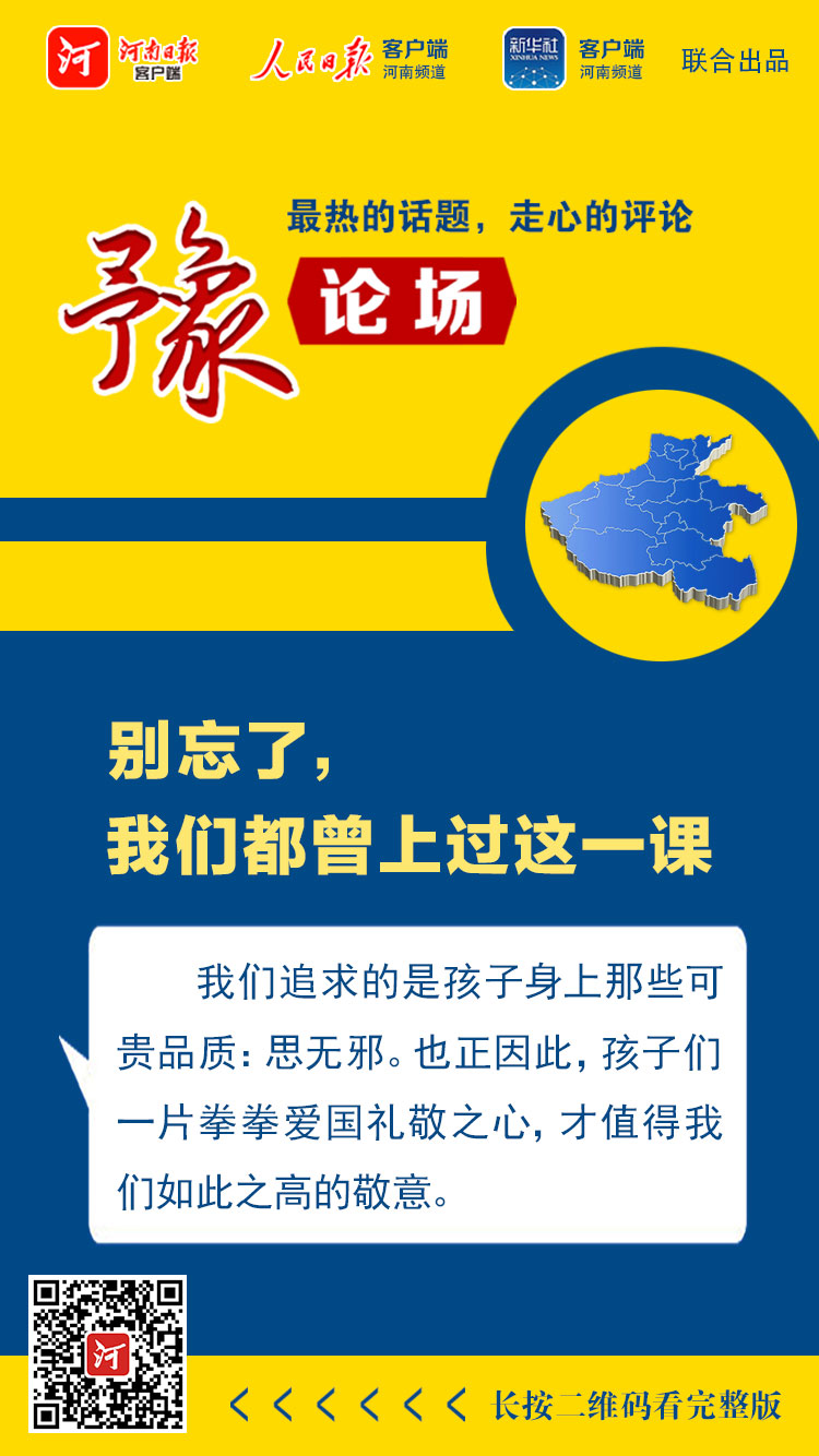 六一将至,人们总在这个时候对“童心”予以更多注目和向往。但其实我们追求的与其说是童心,毋宁说是孩子身上那些可贵品质:诚挚纯洁、表里如一——一言以蔽之,思无邪。也正因此,孩子们一片拳拳爱国礼敬之心,才值得我们如此之高的敬意。与之相对,那些对此附加太多想像的人,未必出于“邪”意,但是不是也要以童心为镜,反思一下那些本该纯粹的情感,是否也因走上“斜”路而蒙尘?