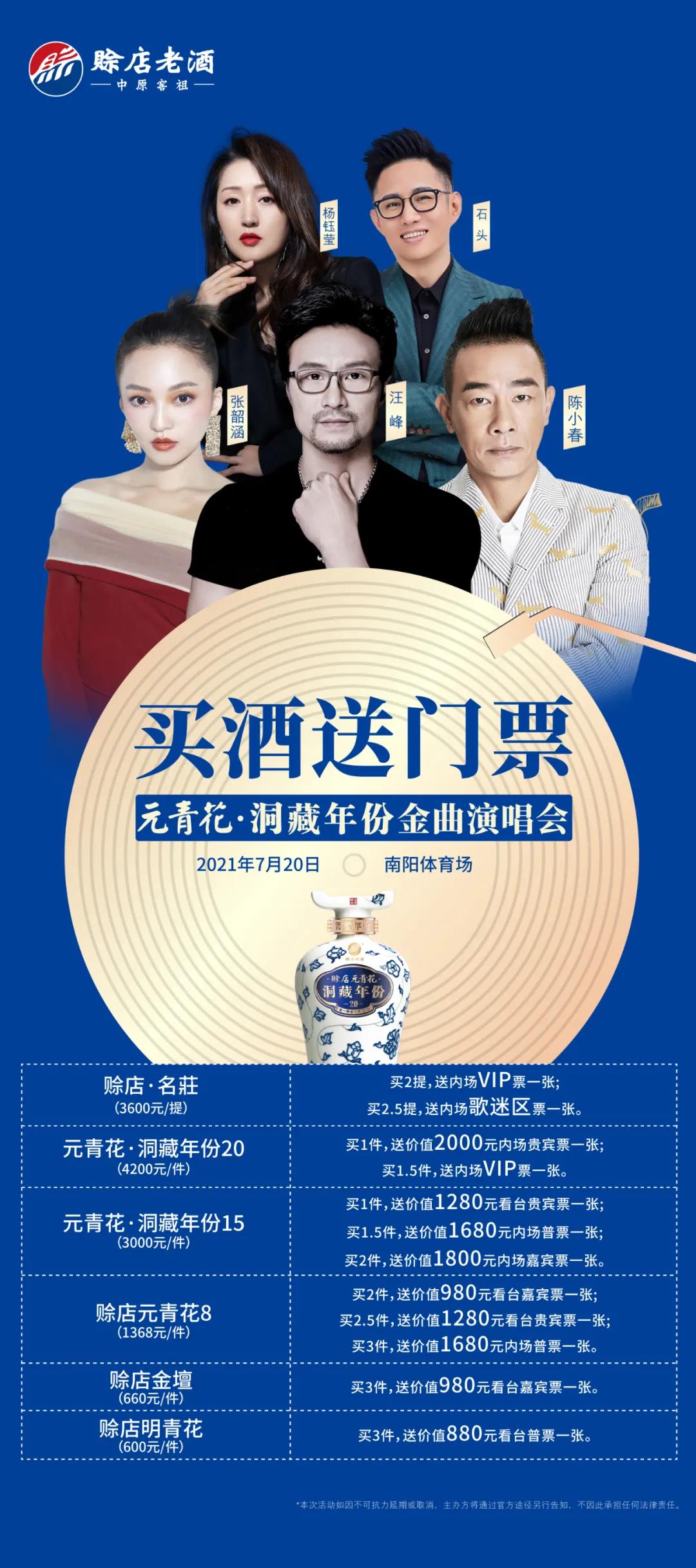 咨询南阳各大烟酒店,购买赊店老酒指定产品,即可获赠演唱会门票!