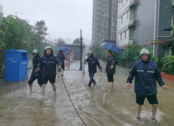 由于暴雨影响,整个朝凤路沿线都断水断电了,7月21日中国安能救援队驰援朝凤路沿线恢复供电。牛魏东组织员工与救援队一起彻夜清理积水淤泥,抢修设备,终于在7月22日凌晨4点,实现了小区大部分区域的通水、通电和排水。