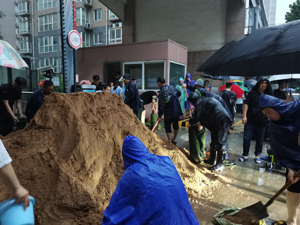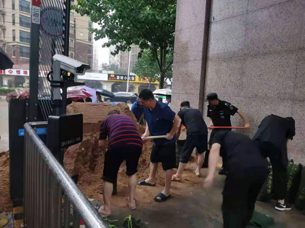 7月20日,郑州暴雨如注,牛魏东所负责的几个项目小区也被淹。作为亚太物业的总经理,他及时协调7台污水泵、铲车和沙土,发动小区沿线商户和居民志愿者填装沙袋,对车库口、单元口、商铺等容易雨水倒灌的部位进行封堵。风大雨大,园区的很多树木都被冲倒,为保证群众安全,他又组织人员对树木进行归位固定。