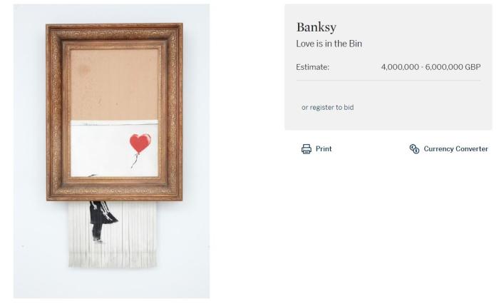 3年前“自毁”的班克西涂鸦作品,估价涨了20倍……