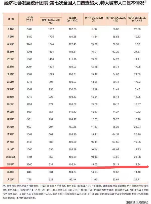 最近,由国家统计局提供的《经济社会发展统计图表:第七次全国人口普查超大、特大城市人口基本情况》在2021年第18期《求是》杂志上公布。我国超大城市增至7个,特大城市增至14个。其中,郑州入选特大城市。消息一出,迅速成为大家热议的焦点。