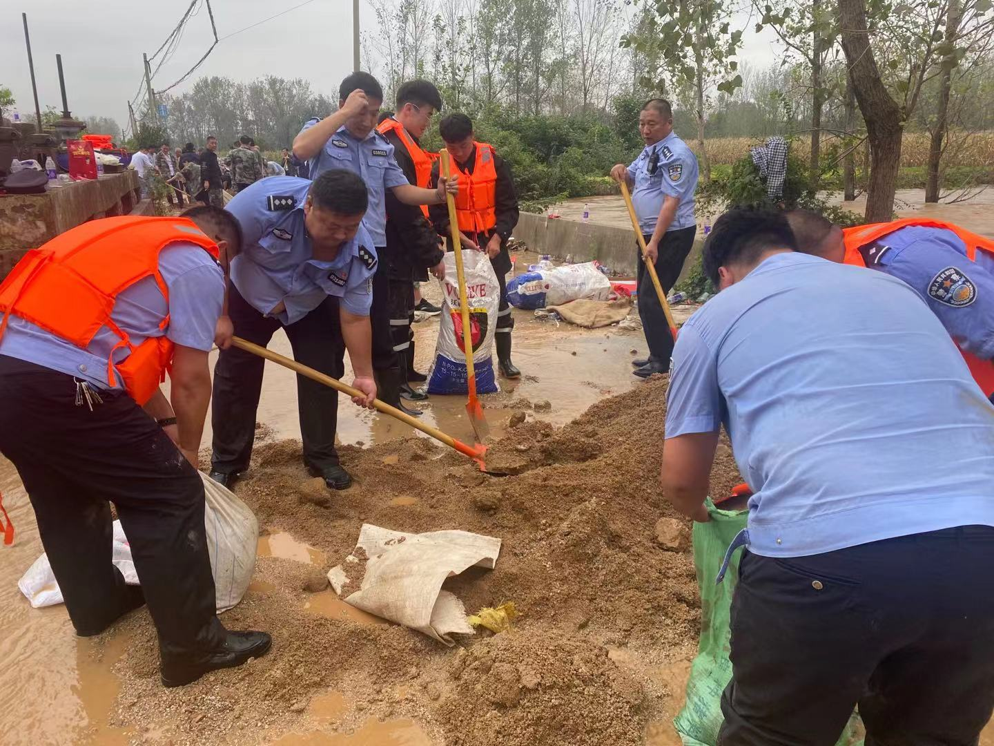 9月25日上午9时,巡防队员稍作调整休息后,接到指令,水寨乡南屈庄村灰河大堤需要加固增援。灾情就是命令,该大队教导员王延峰立即组织30名应急突击队员,带齐装备赶往事发河堤,对两处堤坝漫溢处紧急填堵加固。