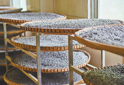 做豆豉的步骤之一,将黑豆晾晒发酵。严立政摄(人民视觉)