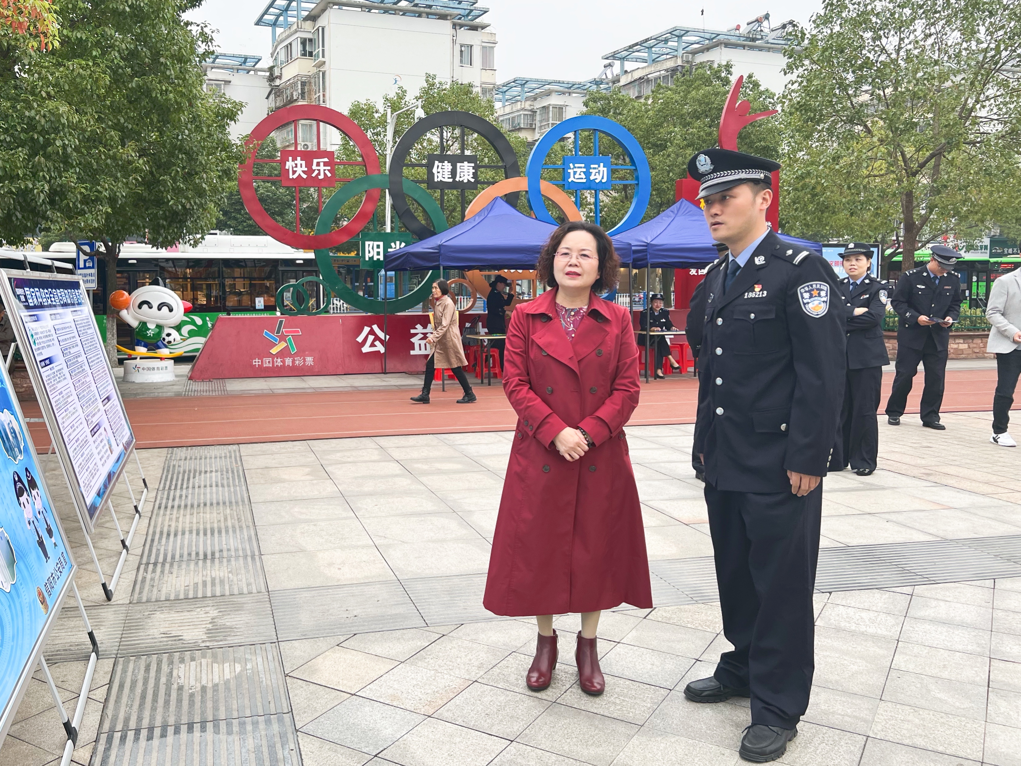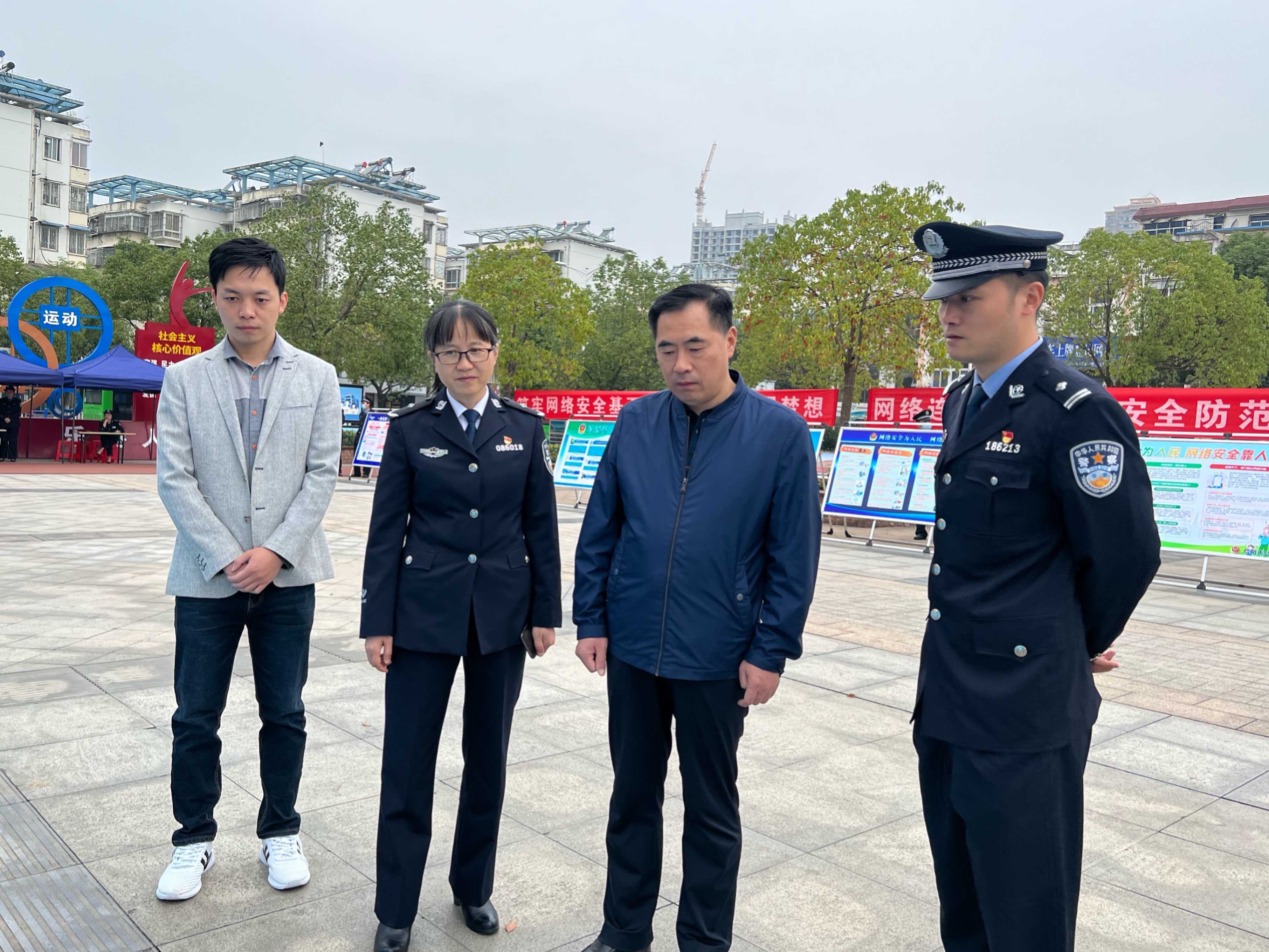 10月14日上午,由信阳市委网信办和信阳市公安局联合组织的2021年国家网络安全宣传周信阳市法治日活动在浉河区体彩广场举行。市委网信办主任林青、副主任邬长军,市公安局党委委员、政治部主任杨芳芳现场观摩指导。