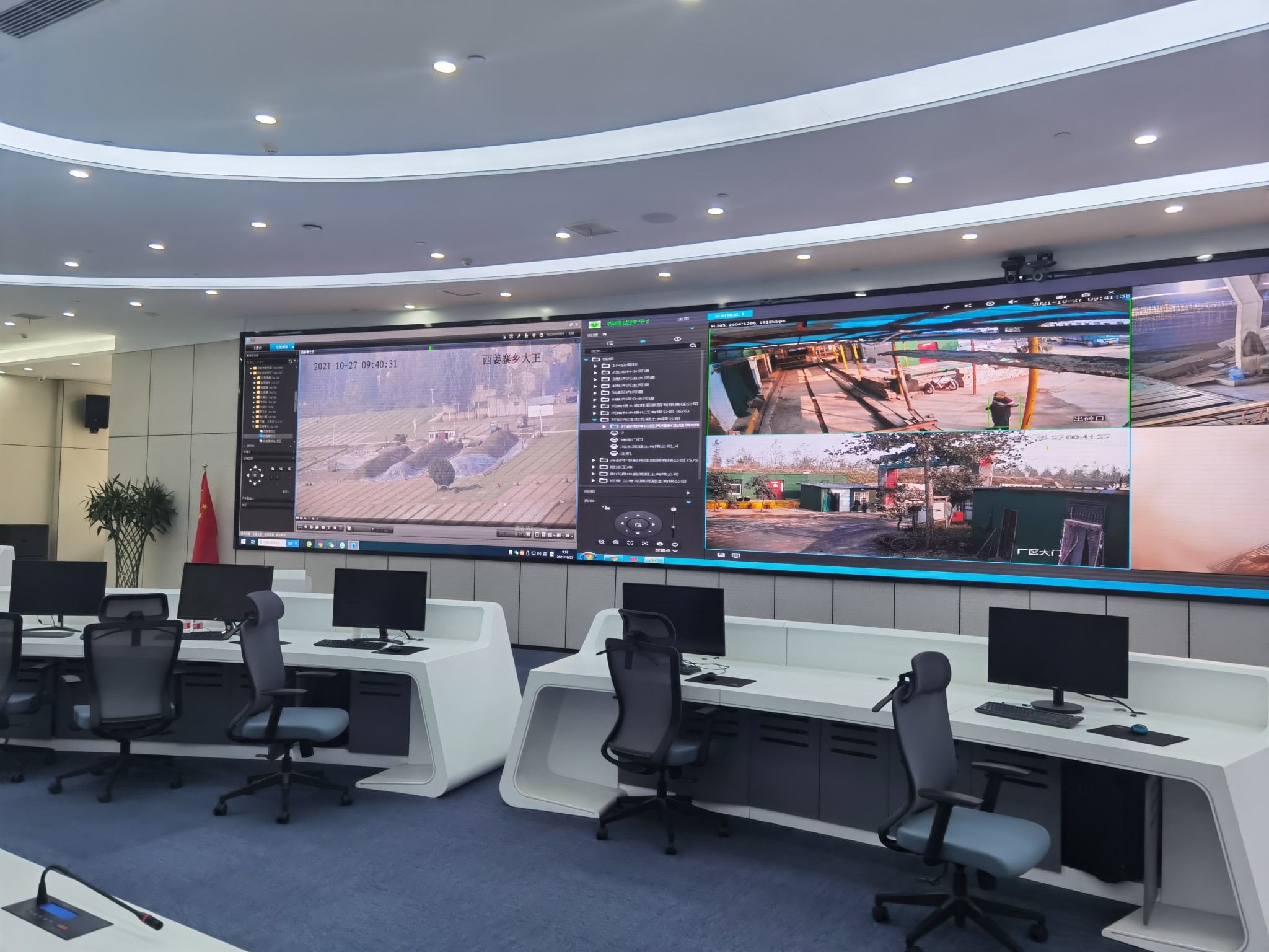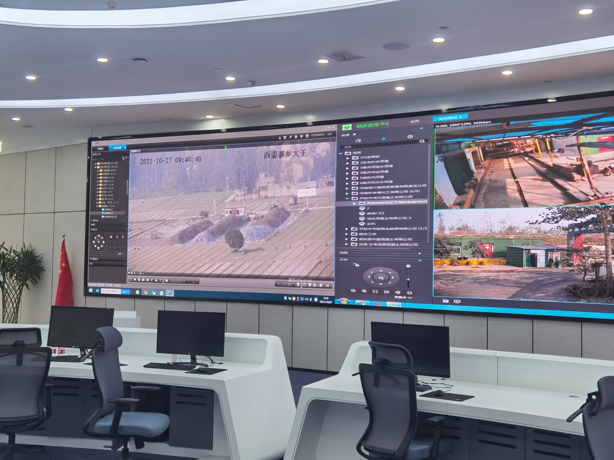 10月29日,在开封市攻坚办智慧环保指挥大厅,工作人员打开工业企业视频监控系统,记者看到1000多家企业的生产状况尽收眼底,随机点开禹王台区某商品混凝土有限公司,生产车间、上料口、存料场和大门口冲洗设备清清楚楚,厂区情况一目了然。再点开尉氏县某家具公司,木工车间、中央除尘设备、喷涂车间亦是完全呈现在监控大屏之上。