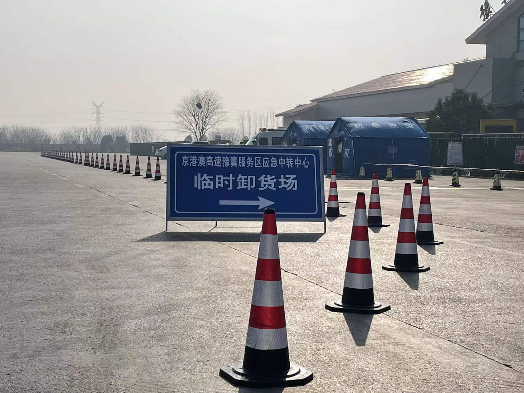 ▲京港澳高速豫冀界服务区应急中转中心临时卸货场。杨之甜 摄
