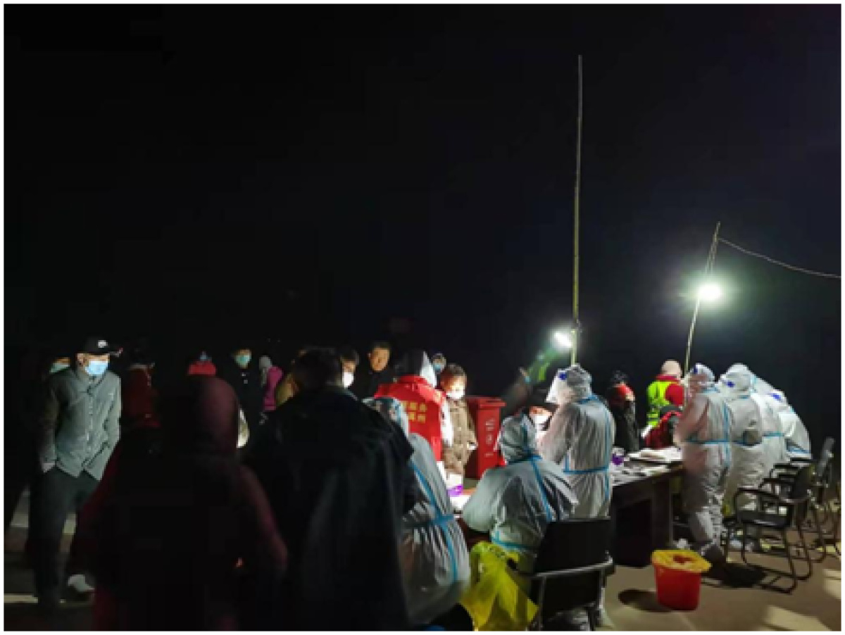 1月2日,河南许昌禹州市发现新冠肺炎确诊病例,疫情形势严峻。当天晚上,李二西所在村子临时接到全村核酸检测的通知,他丝毫没有犹豫便穿上了防护服连夜为村民进行核酸采样。首轮核酸采样一直从1月3日凌晨3点持续到早上8点钟。随后,李二西又上门为那些年老体弱不便出门的人做核酸采样。