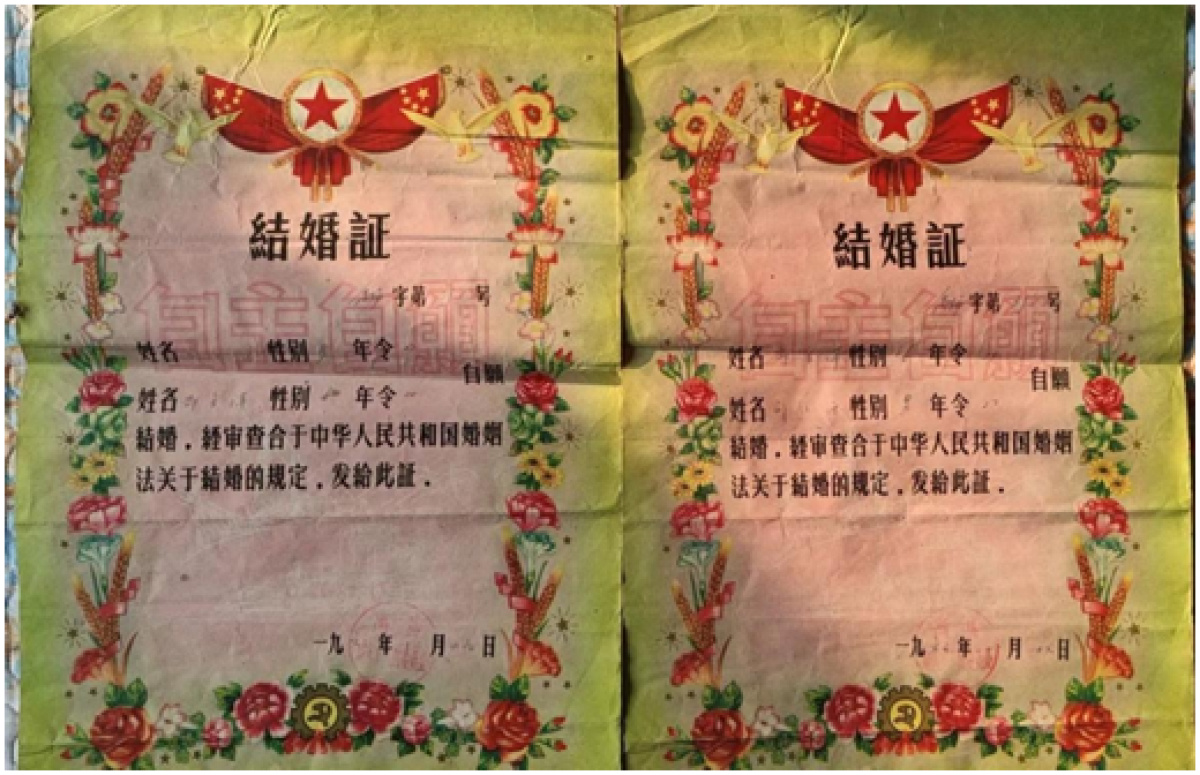 李二西与妻子的结婚证