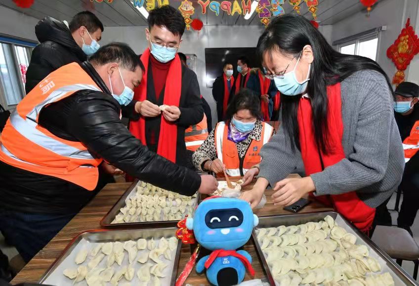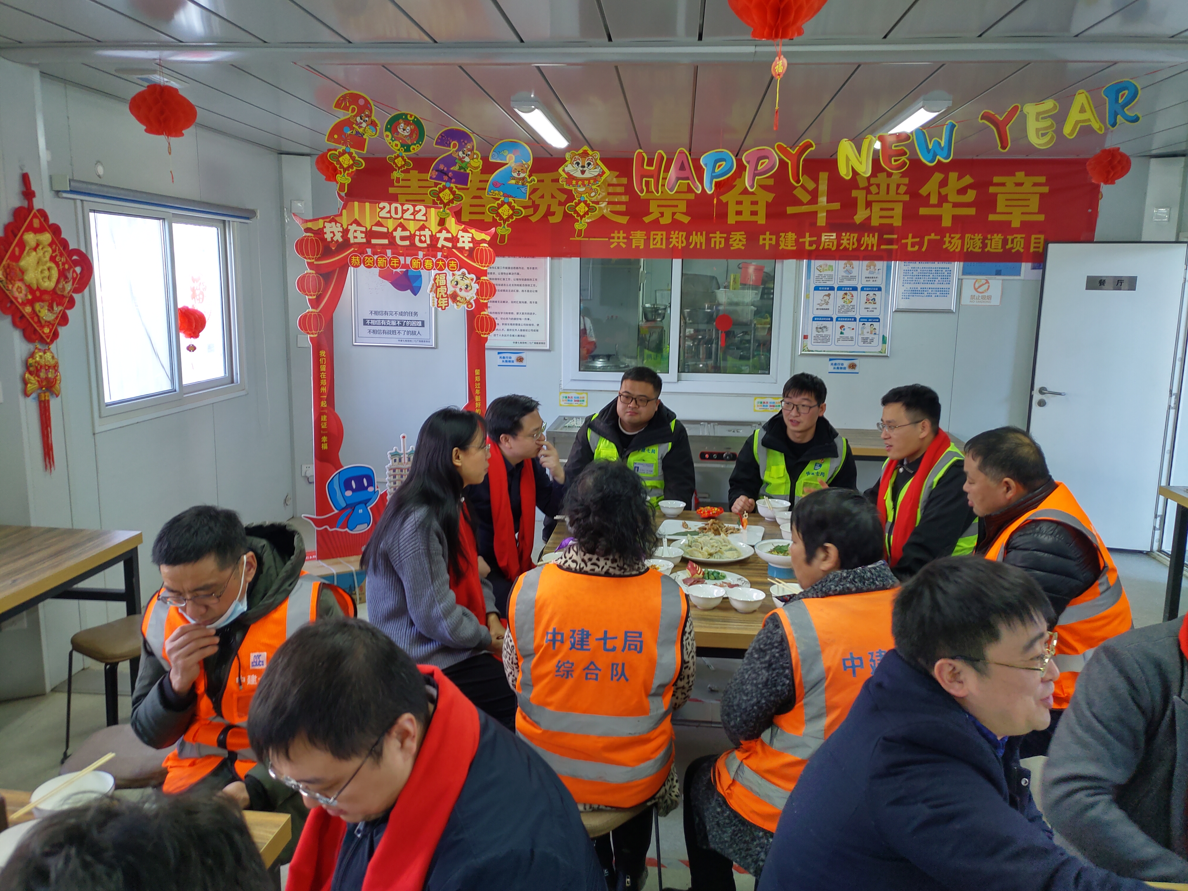 大河网讯(记者 何心悦)留郑过年,年味不减。1月31日中午,在中建七局郑州二七广场隧道项目部,留郑青年和工友代表欢聚食堂,一起和面、擀皮、包饺子,坚守工作岗位的他们虽与亲人相隔千里,依然满怀期盼地庆祝农历虎年春节的到来。
