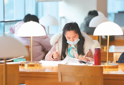 2月5日,市民在江苏南通市图书馆看书、学习。徐培钦摄 (人民图片)