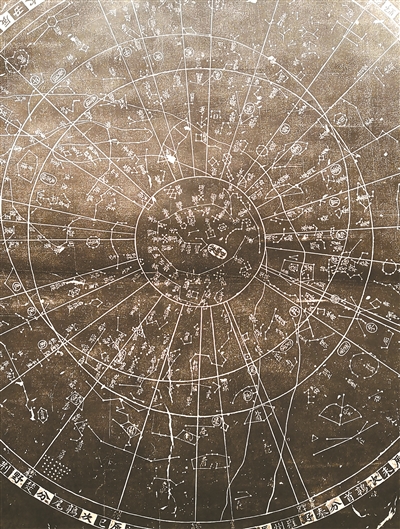 到了南宋,人们已能绘制出极为详尽的星空图案。展厅中来自苏州碑刻博物馆的南宋天文图碑拓片曾被英国著名科学家李约瑟博士在他的巨著《中国科学技术史》中高度赞扬。此图为南宋光宗元年(1190)负责教授嘉王赵扩的朝廷官员黄裳绘制,是世界上现存最早的一张具有二十八宿名称的天文图,比欧洲领先三百多年。全图共刻恒星1434颗,银河带斜贯星图,具有重要的天文学史料价值。