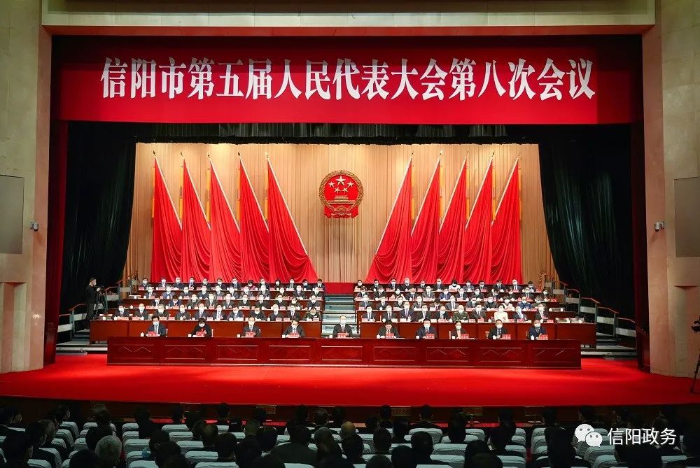 下午2时30分,大会开始。会议依次表决通过了信阳市第五届人民代表大会第八次会议关于政府工作报告的决议、关于信阳市2021年国民经济和社会发展计划执行情况与2022年国民经济和社会发展计划的决议、关于信阳市2021年财政预算执行情况和2022年财政预算的决议、关于信阳市人大常委会工作报告的决议、关于信阳市中级人民法院工作报告的决议、关于信阳市人民检察院工作报告的决议;公布了民生实事项目票决结果;表决通过了信阳市第五届人民代表大会有关专门委员会组成人员名单。