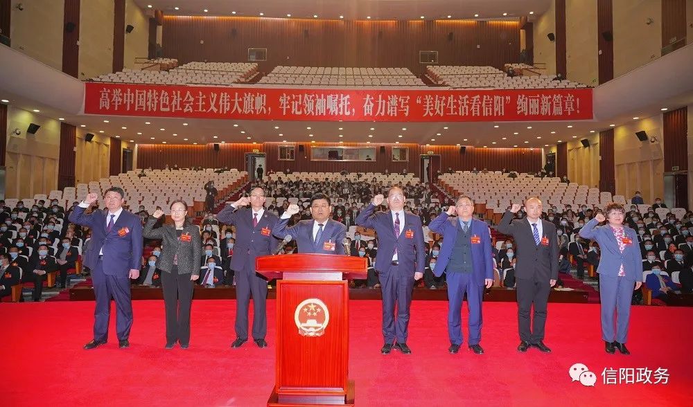 新当选的市人民政府市长陈志伟作了讲话。陈志伟说,大会选举我担任市人民政府市长。我深知,代表们投出的每一张选票,都饱含着对我的信任和支持,承载着全市人民的期望和重托。我一定在市委坚强领导下,做好每件事,干好每一天,竭力为信阳913万老区人民服务。我将坚守信念,践行绝对忠诚。坚持以习近平新时代中国特色社会主义思想武装头脑,把捍卫“两个确立”、增强“四个意识”、坚定“四个自信”、做到“两个维护”,落实到一言一行、融入到灵魂血脉。胸怀“两个大局”、心系“国之大者”,提高政治判断力、政治领悟力、政治执行力,不折不扣推动党中央国务院决策部署和省委省政府、市委各项工作要求落地落实。担当实干,勇创一流业绩。牢牢把握发展第一要务,完整、准确、全面贯彻新发展理念,传承弘扬大别山精神,躬身入局,挺膺负责。坚持项目为王、树牢结果导向、强化“答卷”意识,多做打基础、利长远的大事,多办补短板、强弱项的实事,多解破瓶颈、促发展的难题,以“功成不必在我”“功成必定有我”的境界担当,坚定走生态优良、生产高端、生活更好的发展路子,推动信阳在革命老区振兴发展中走在全国前列,努力把“两个更好”的殷殷嘱托变成美好现实。执政为民,增进民生福祉。把人民对美好生活的向往作为奋斗目标,把以人民为中心的发展思想扎根在灵魂深处、落实到具体行动中,政策向民生聚焦、财力向民生倾斜、服务向民生覆盖。用心用情用力补齐民生短板,高质量办好每一项民生工程、每一件民生实事,全力解决好群众关心的就业、教育、医疗、住房、养老等问题,让人民群众的获得感幸福感安全感更加充实、更有保障、更可持续。崇尚法治,依法履职尽责。认真贯彻习近平法治思想,坚持用法治思维和法治方式推进政府工作,按程序决策、按规矩办事、按制度落实。忠实履行宪法和法律赋予的职责,全面贯彻执行市人大及其常委会的决议,认真办好人大代表议案、建议和政协委员提案,主动接受人大及其常委会的法律监督和工作监督、政协的民主监督和各方面监督,确保在阳光下用权,在监督中干事。严于律己,坚守廉洁底线。自觉把政治纪律和政治规矩挺在前面,带头落实中央八项规定及其实施细则精神,不越“底线”、不踩“红线”、不触“高压线”。牢牢扛起市政府全面从严治党第一责任人责任,切实履行“一岗双责”,坚持严的主基调不动摇,永葆为民务实清廉的政治本色。