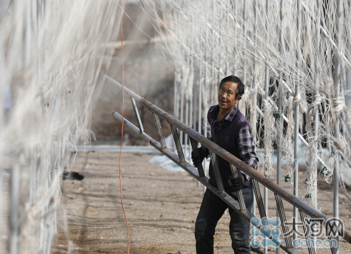 3月3日,宝丰县观音堂林业生态旅游示范区大石扒村村民在建设大棚