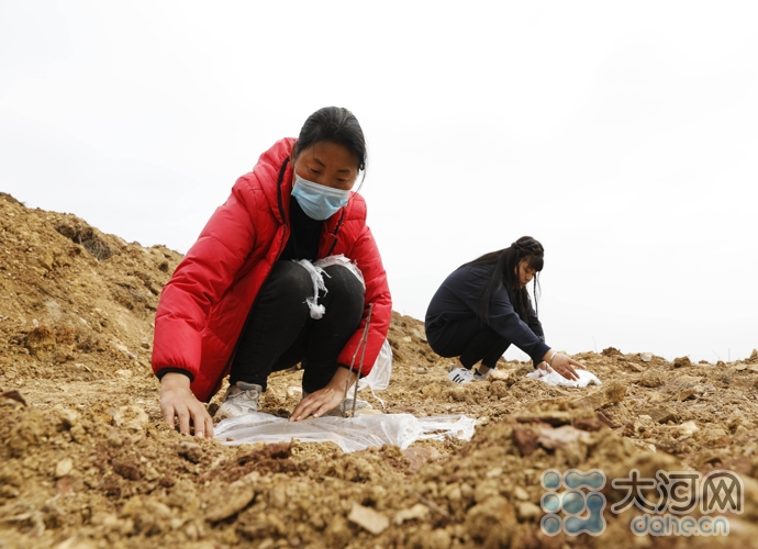 3月3日,宝丰县观音堂林业生态旅游示范区庄科村村民在栽种花椒树苗