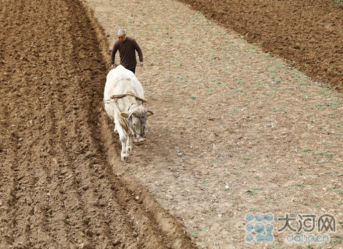 3月3日,宝丰县观音堂林业生态旅游示范区大石扒村村民在犁地