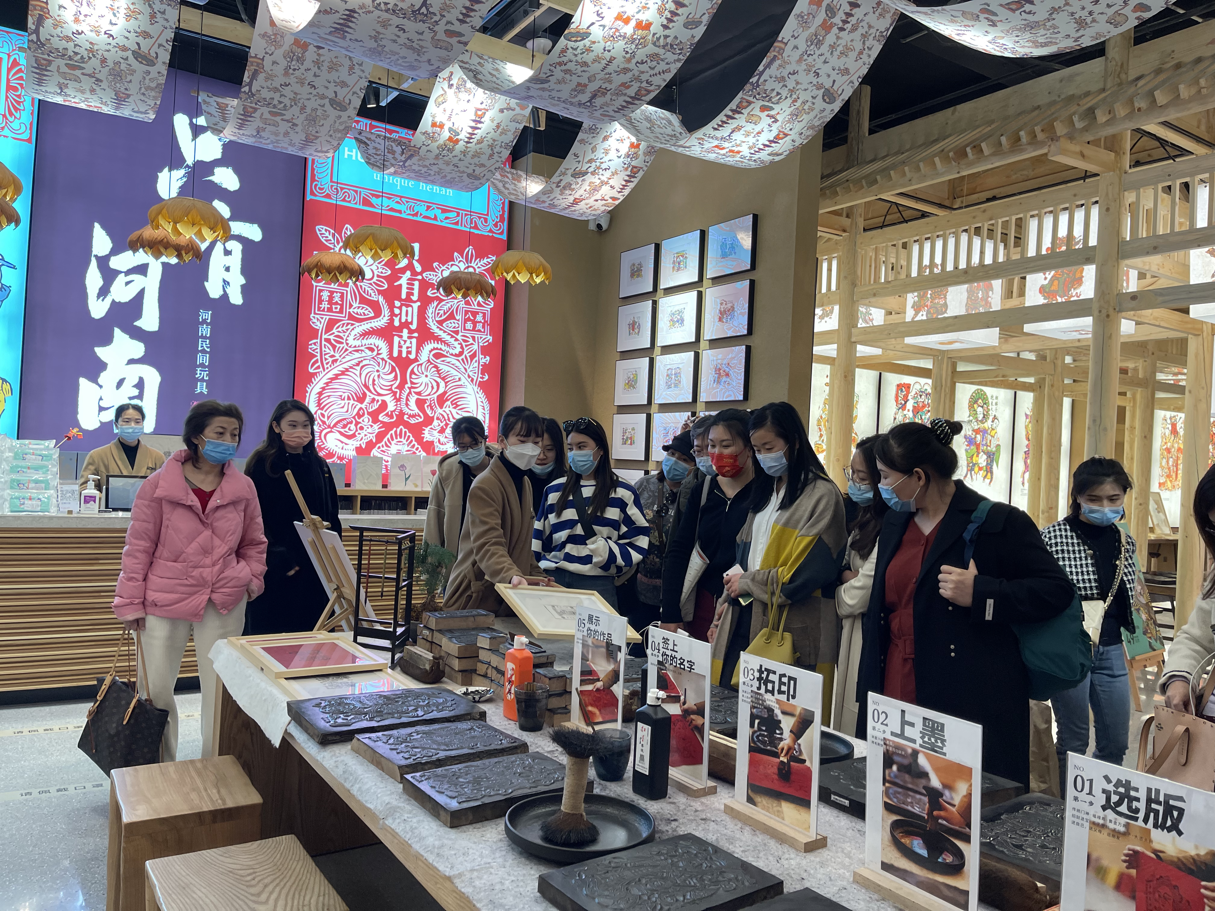 到达“只有河南·戏剧幻城”后,首先映入眼帘的是一片百亩麦田和一堵由现代工法夯成的高大城墙,大家纷纷在此处拍照留念。进入戏剧幻城内部,红庙学校、幻城剧场、第七机车车辆厂礼堂、老库房……在一场场沉浸式戏剧中,大家一同聆听了关于土地、粮食和传承的故事。其间,大家走进只有河南“地坑院”,参与了纸上河南店铺内的非遗体验,感受手作风筝、木版年画和虎灯的精妙之处。