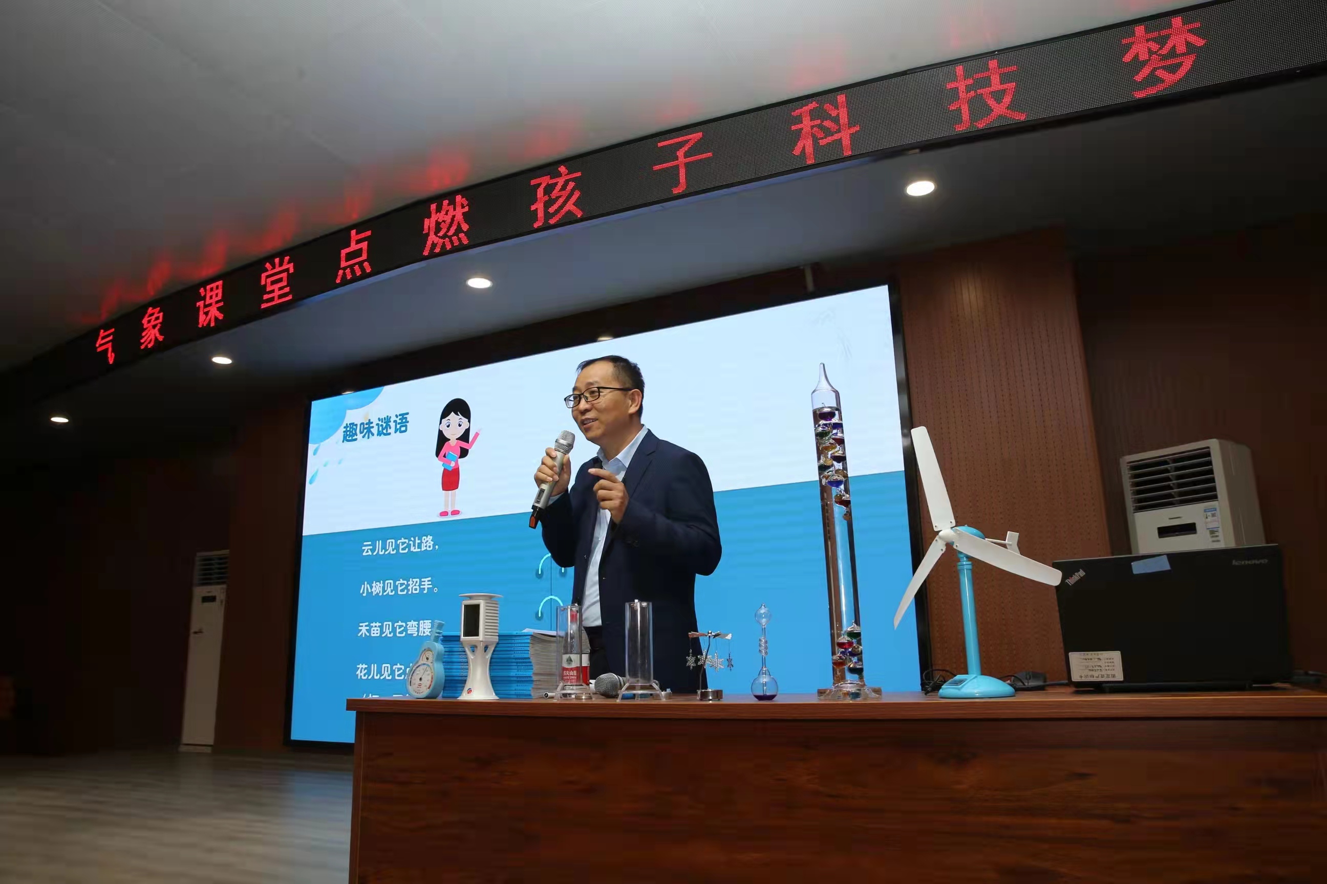河南省气象局首席气象专家、河南省首席科普专家王建忠用通俗易懂、充满童趣的语言为孩子们主讲了《风云际会——气象的故事》。